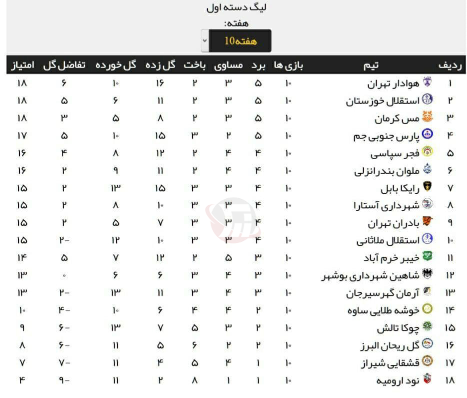 هفته دهم لیگ دسته اول فوتبال؛
