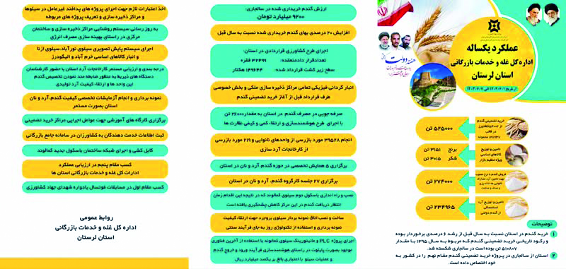 عملکرد یکساله اداره کل غله و خدمات بازرگانی استان لرستان